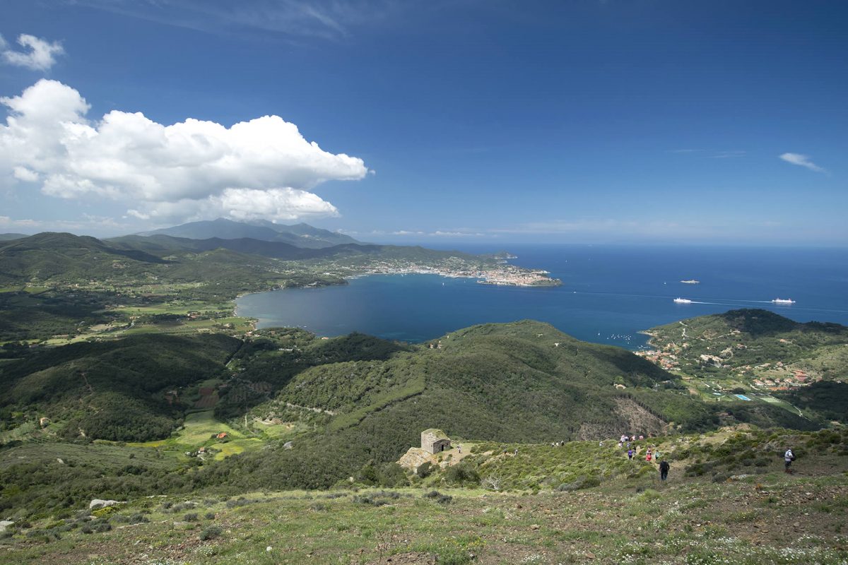 In cima, a 1019 metri di altezza, la vista si perde su 360 gradi di mare infinito, le isole toscane e la Corsica.